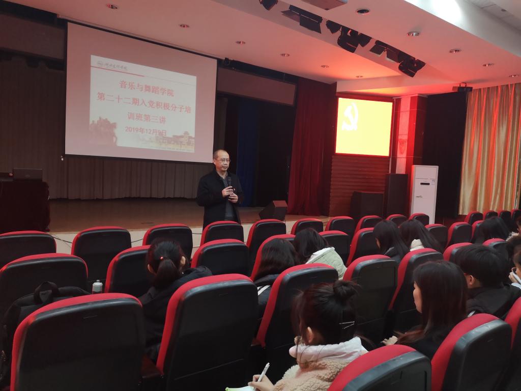 (腾博tengbo9885官网 通讯员 张俊秀)2019年12月9日星期一,腾博tengbo9885官网在南区一栋多功能厅举行了腾博tengbo9885官网第二十二期党校暨2019年预备党员培训班第三讲,第二十二期入党积极分子和全体预备党员参加。此次党课邀请到经济与管理学院的党委书记徐超教授授课,他作了题为“牢记使命,勇做时代的弄潮儿!”党课。
