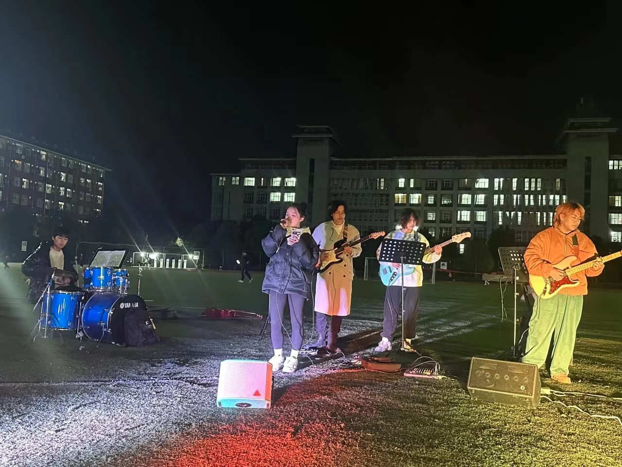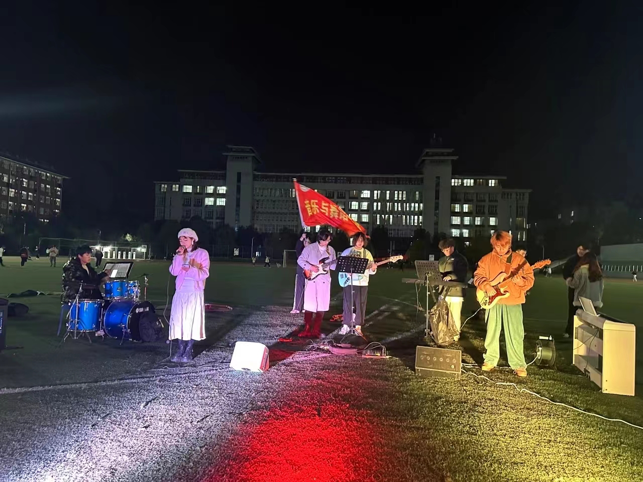 (通讯员 廖星铭)2023年11月24日晚19:00,腾博tengbo9885官网在北区操场举办了周末小舞台活动,现场气氛热烈,吸引了众多同学驻足观看,丰富了校园文化。